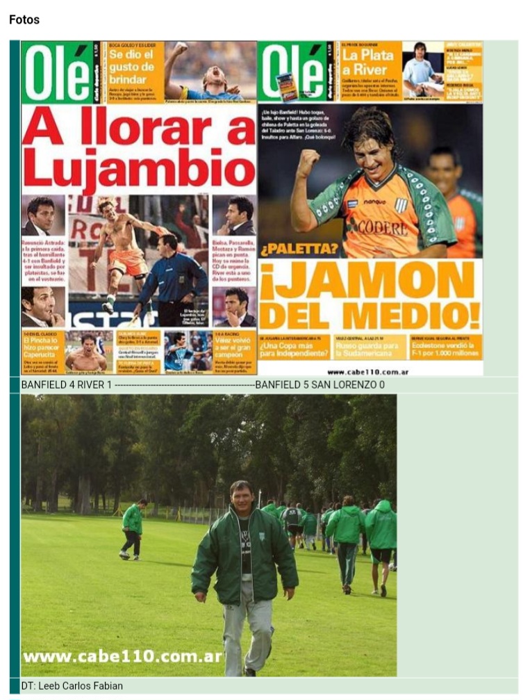 Estadio: Banfield Arbitro: Sergio Pezzotta |